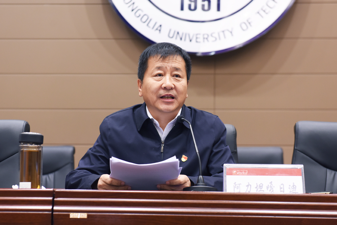 阿力坦嘎日迪围绕中国共产党正风反腐历程回顾、深刻认识当前正风反腐的形势、扎实推进学校正风反腐取得新成效三个方面进行了详细的讲解,针对学校下一步落实全面从严治党工作的思路提出了要求。一是强化政治修养,筑牢思想防线。二是强化担当作为,正确履行职权。三是强化纪律意识,严守廉政底线。他指出,学校纪委要科学运用“四种形态”,以“四种形态”衡量监督执纪的效果,进一步转变监督理念;以“四种形态”优化纪律审查的运行,进一步创新方式方法;以“四种形态”推动监督模式的优化,进一步探索履责路径