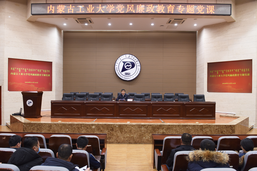 为推动学校全面从严治党工作向纵深发展,进一步加强学校党风廉政建设和反腐败工作,12月16日下午,学校纪委书记、监察专员阿力坦嘎日迪为全校处级领导干部、各单位各部门管理岗正科级干部、师生代表讲授题为“重温党史、认清形势,推动学校党风廉政工作取得新成效”的党风廉政专题党课。