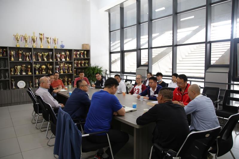 5月29日,我校召开高水平运动员术科测试考务会,校纪检监察处王利明、招生就业处郝镳,体育教学部领导班子和15名考务人员(含2名外聘专家)参会。
