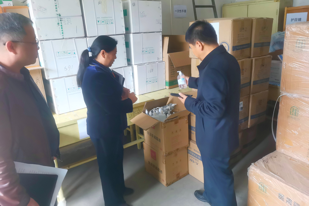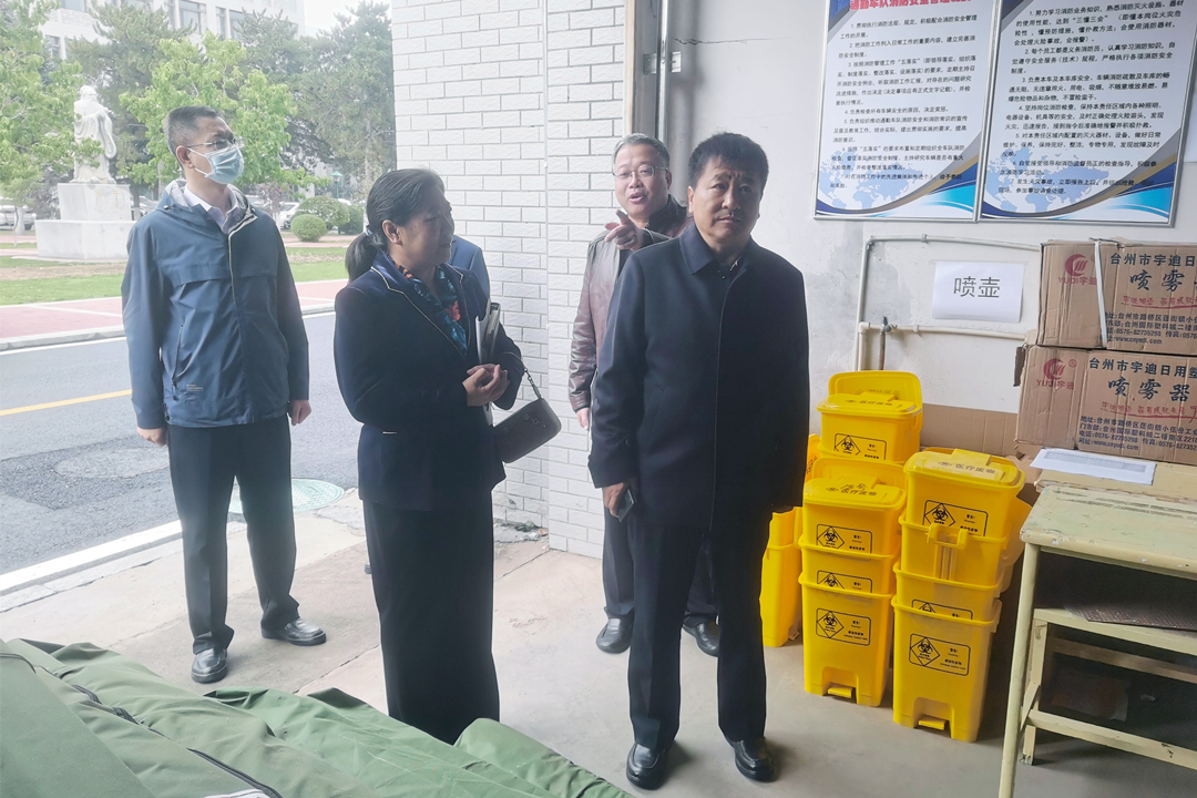 阿力坦嘎日迪一行现场检查了后勤管理处物资储备库和校医院物资储备库,对物资存放方式、库房防火防潮情况等进行了检查;对物资采购、领用流程、库存和使用情况进行了了解;并与后勤管理处防疫物资管理人员进行了深入交流。他强调,后勤管理处作为我校校园消杀、物资管理及医疗保障工作中关键而基础性的一环,在做好学校疫情防控工作中发挥着十分重要的作用。后勤管理处要切实抓好物资储备和管理相关工作,实时准确掌握物资储备数据和物资使用方向,为全校疫情防控常态化工作提供坚实保障;全体干部职工要提高政治站位、明确责任,以饱满的热情和严谨的态度完成疫情防控各项工作